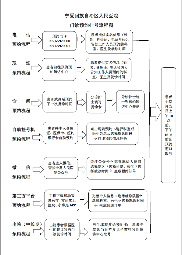 宁夏回族自治区人民医院 门诊预约挂号流程图