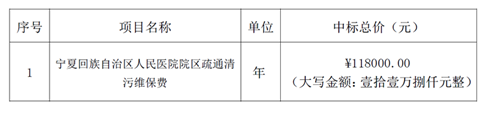 内容:宁夏回族自治区人民医院院区疏通清污维保单位项目