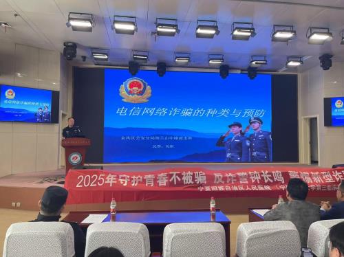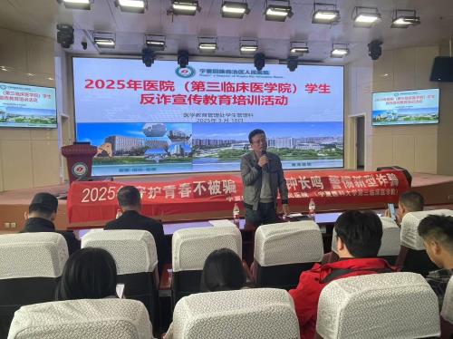 在电信诈骗手段升级、校园案件频发的背景下,3月18日下午在行政中心报告厅,医院(第三临床医学院)开展“守护青春·反诈同行”专题教育培训。本次培训邀请贺兰山中路派出所三级警长化刚主讲,在院400余名本科生、研究生及住培学员参加此次培训活动。