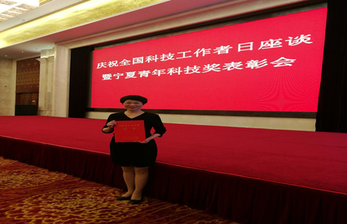 为深入贯彻落实习近平新时代中国特色社会主义思想和党的十九大精神,大力实施人才强区工程,激发广大青年科技工作者的创新创业创造精神,引导广大青年科技工作者积极投身自治区“三大战略”和“五个扎实推进”,自治区党委组织部、自治区人力资源和社会保障厅、自治区科学技术协会联合开展了第十六届“宁夏青年科技奖”推荐评选工作。全区共145名候选人中评选出20名青年科技工作者,并于2018年5月28日在银川进行表彰,我院梅迎雪获此殊荣。
