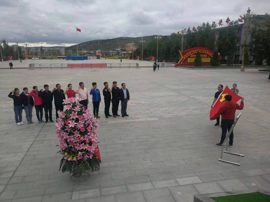 翌日上午,吕金捍院长带领慰问小组一行来到西吉县将台堡红色教育基地,开展“不忘初心、牢记使命”走好新时代的长征路红色基因教育活动。在庄严肃穆的红军长征会师纪念碑前,大家重温入党誓词,并向纪念碑敬献了花篮。