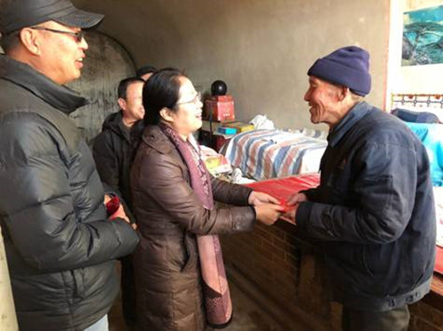 沿着崎岖的山路,顶着凛冽的寒风,在医院扶贫队员的带领下,郝银菊书记一行先后来到虎山庄村、草滩村的4户困难户家中,与他们进行亲切交谈,详细询问他们的身体状况、家庭收入、致贫原因等情况,鼓励他们借助党的扶贫政策,自力更生,争取早日脱贫。随后,代表医院为他们赠送了慰问金,祝愿他们度过一个祥和、幸福的新春佳节。